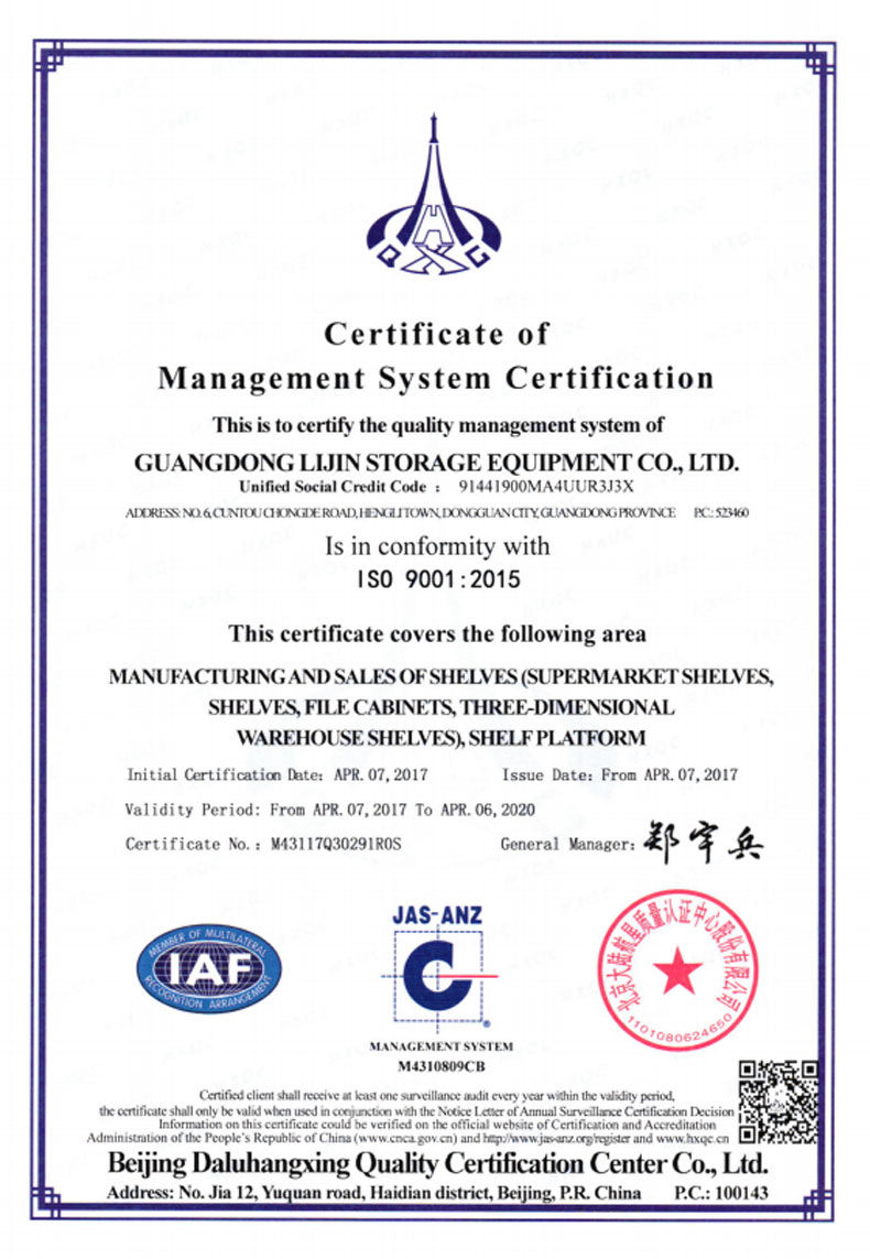 ?2016年5月    更名為廣東力進倉儲設備有限規公司,搬遷至東莞市橫瀝鎮村頭工業區,占地面積12800平方米。